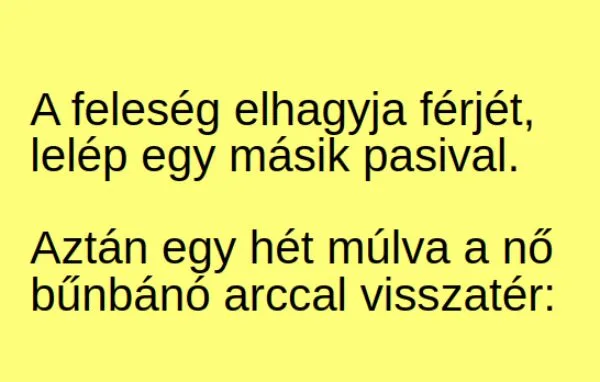 Aztán egy hét múlva a nőbűnbánó arccal visszatér:
