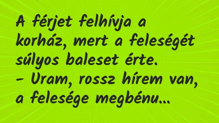 – Uram, rossz hírem van, a felesége megbénult nyaktól lefelé.