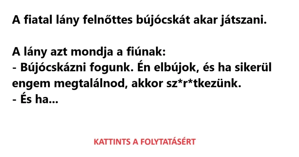 Én elbújok, és ha sikerül engem megtalálnod, akkor sz*r*tkezünk.– És ha mégsem sikerül megtalálni téged?
