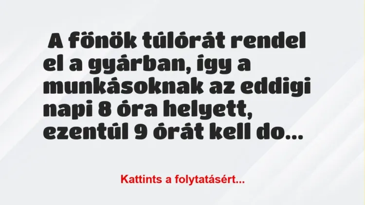 A főnök túlórát rendel el a gyárban, így a munkásoknak az eddigi napi 8 óra helyett, ezentúl 9 órát kell dolgozniuk.