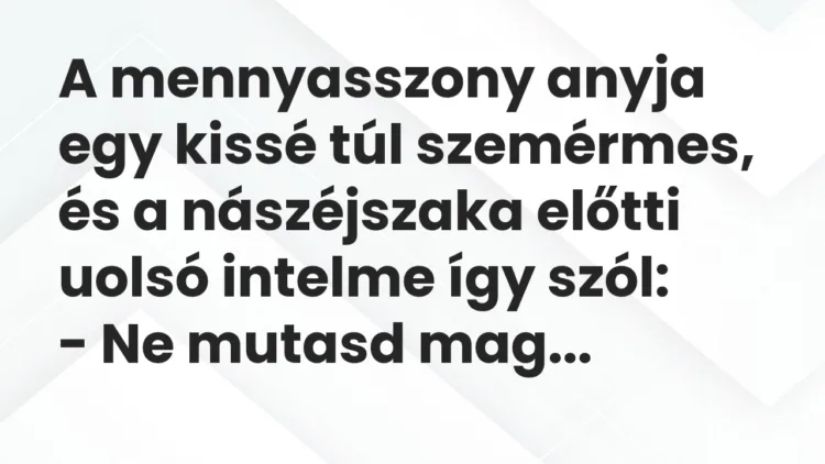 A mennyasszony anyja egy kissé túl szemérmes, és a nászéjszaka előtti uolsó intelme így szól: