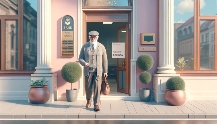 A nyugdíjas bácsi elmegy a bankba, hogy felvegye a nyugdíját.