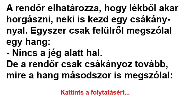 A rendőr elhatározza, hogy lékből akar horgászni, neki is kezd egy csákánnyal.