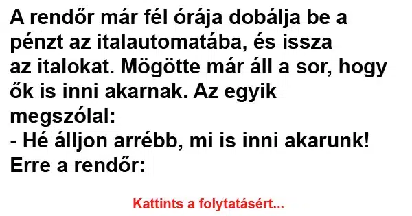 A rendőr már fél órája dobálja be a pénzt az italautomatába, és issza
