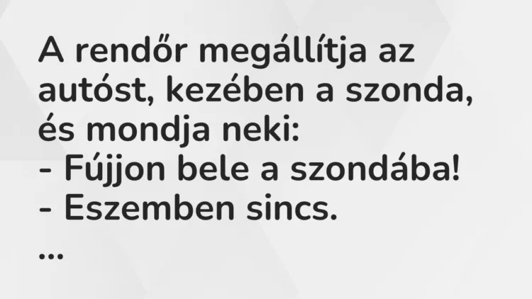 – Nem mondom még egyszer, fújjon, mert ha én fújok bele, magának egy életre ugrik a jogosítványa!