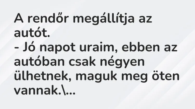 – Jó napot uraim, ebben az autóban csak négyen ülhetnek, maguk meg öten vannak.