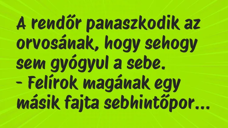 A rendőr panaszkodik az orvosának, hogy sehogy sem gyógyul a sebe.