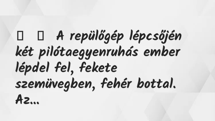 A repülőgép lépcsőjén két pilótaegyenruhás ember lépdel fel, fekete szemüvegben, fehér bottal.
