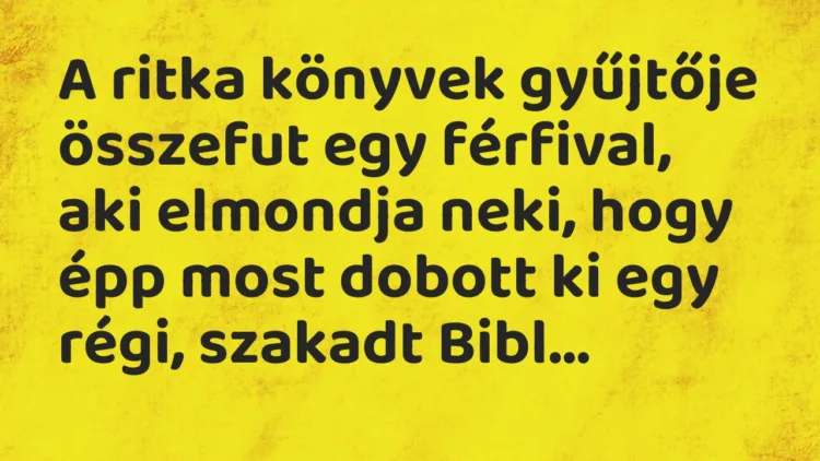 A ritka könyvek gyűjtője összefut egy férfival, aki elmondja neki, hogy épp most dobott ki egy régi, szakadt Bibliát, ami ősidők óta ott porosodott a háza padlásán.