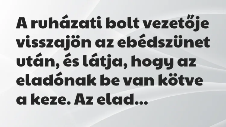 A ruházati bolt vezetője visszajön az ebédszünet után, és látja, hogy az eladónak be van kötve a keze.