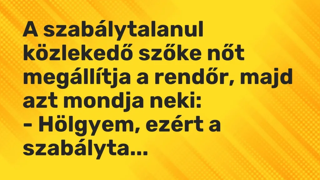 – Hölgyem, ezért a szabálytalanságért 10.000 forint helyszíni bírságot kell fizetnie!