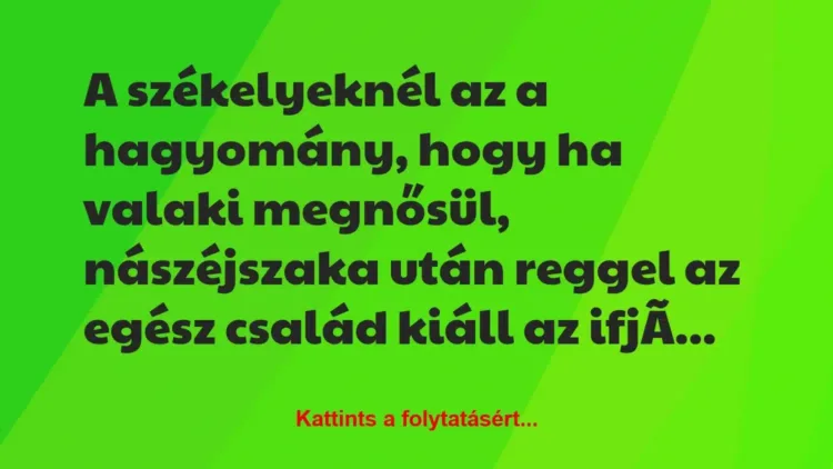 A székelyeknél az a hagyomány, hogy ha valaki megnősül, nászéjszaka után reggel az egész család kiáll az ifjú pár háza
