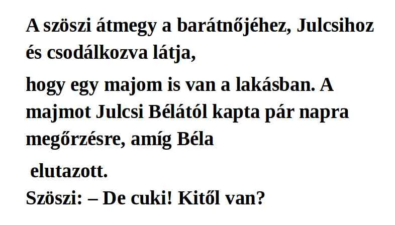 A majmot Julcsi Bélától kapta pár napra megőrzésre, amíg Béla elutazott.