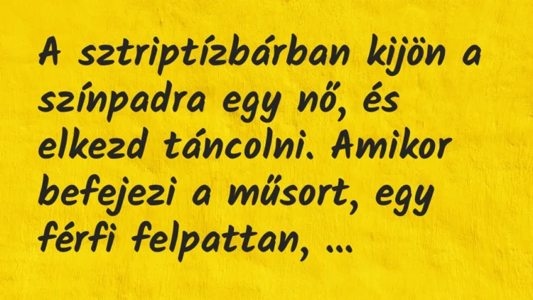 A sztriptízbárban kijön a színpadra egy nő, és elkezd táncolni.