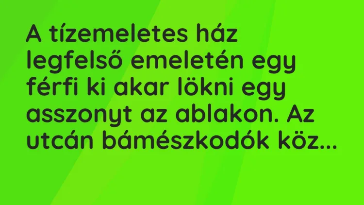 A tízemeletes ház legfelső emeletén egy férfi ki akar lökni egy asszonyt az ablakon.