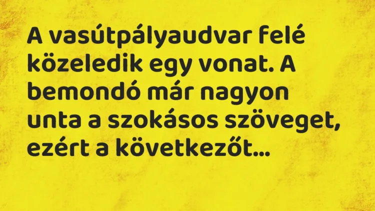 A bemondó már nagyon unta a szokásos szöveget, ezért a következőt mondta: