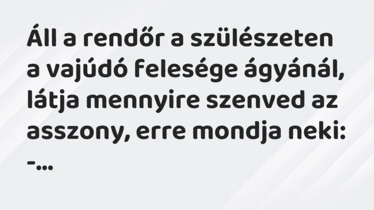 Áll a rendőr a szülészeten a vajúdó felesége ágyánál, látja mennyire szenved az asszony, erre mondja neki: