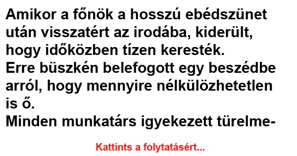 Amikor a főnök a hosszú ebédszünet után visszatért az irodába, kiderült, hogy időközben tízen keresték.
