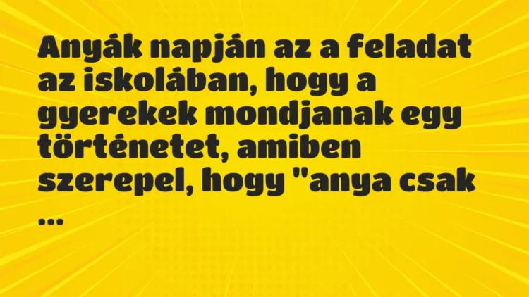 Anyák napján az a feladat az iskolában, hogy a gyerekek mondjanak egy történetet, amiben szerepel, hogy „anya csak egy van!