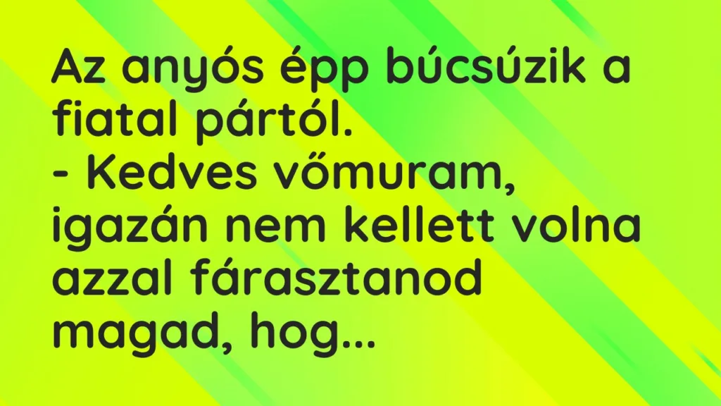 – Kedves vőmuram, igazán nem kellett volna azzal fárasztanod magad, hogy kikísérsz az állomásra – búcsúzik a mama a vonatnál.