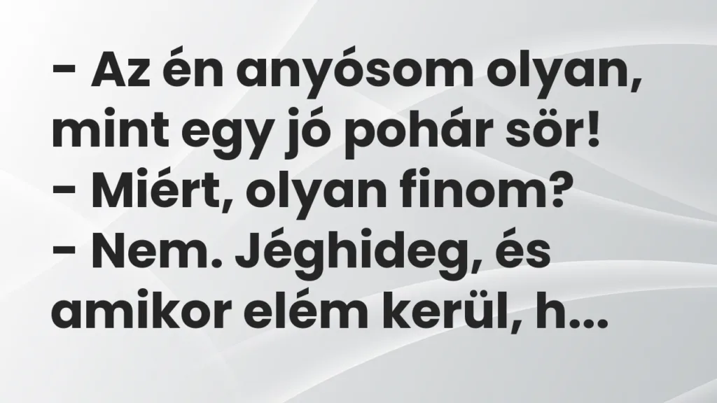 – Az én anyósom olyan, mint egy jó pohár sör!