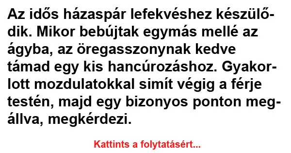 Mikor bebújtak egymás mellé az ágyba, az öregasszonynak kedve támad egy kis hancúrozáshoz.