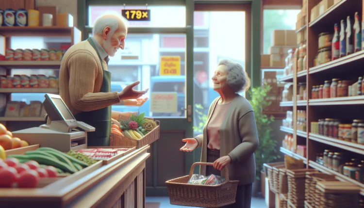 Az idős néni bemegy a boltba, és kéri az eladót, hogy adjon neki egy kiló kenyeret.