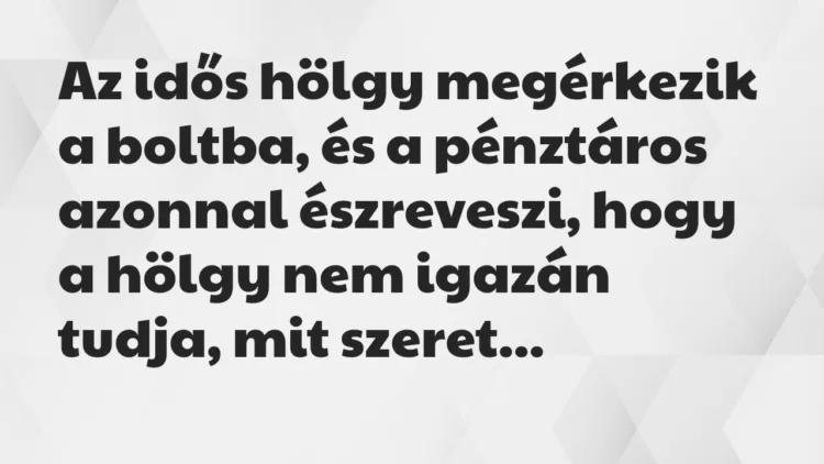 Az idős hölgy megérkezik a boltba, és a pénztáros azonnal észreveszi, hogy a hölgy nem igazán tudja, mit szeretne vásárolni.