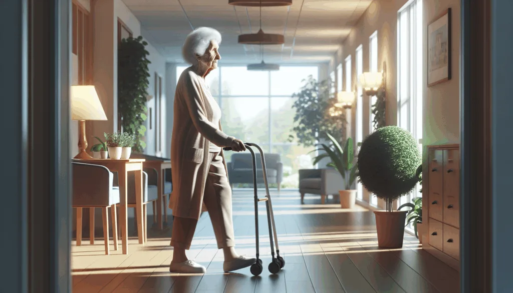 Az öreg néni a nyugdíjas otthonban minden nap sétálni szokott.