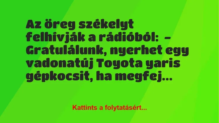 – Gratulálunk, nyerhet egy vadonatúj Toyota yaris gépkocsit, ha megfejti a találóskérdést.