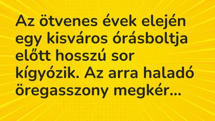 Az ötvenes évek elején egy kisváros órásboltja előtt hosszú sor kígyózik.
