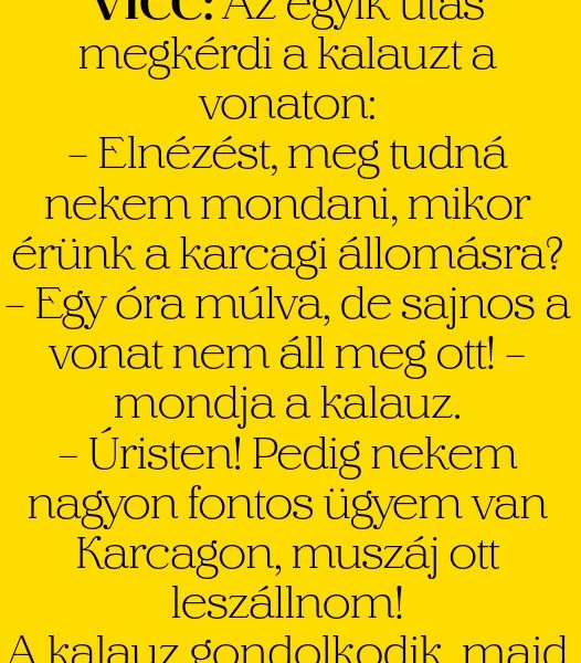 – Elnézést, meg tudná nekem mondani, mikor érünk a karcagi állomásra?