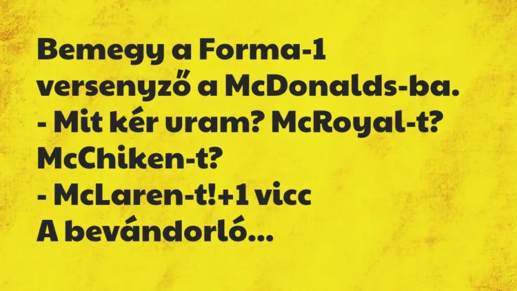 Bemegy a Forma-1 versenyző a McDonalds-ba.
