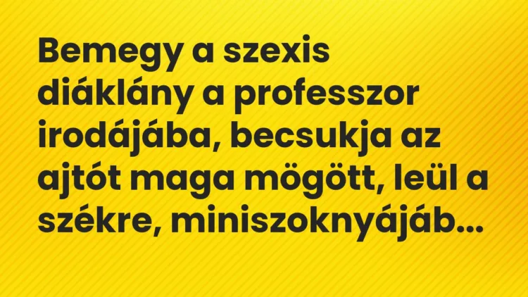 Bemegy a szexis diáklány a professzor irodájába, becsukja az ajtót maga mögött, leül a székre, miniszoknyájából kivillannak a combjai.