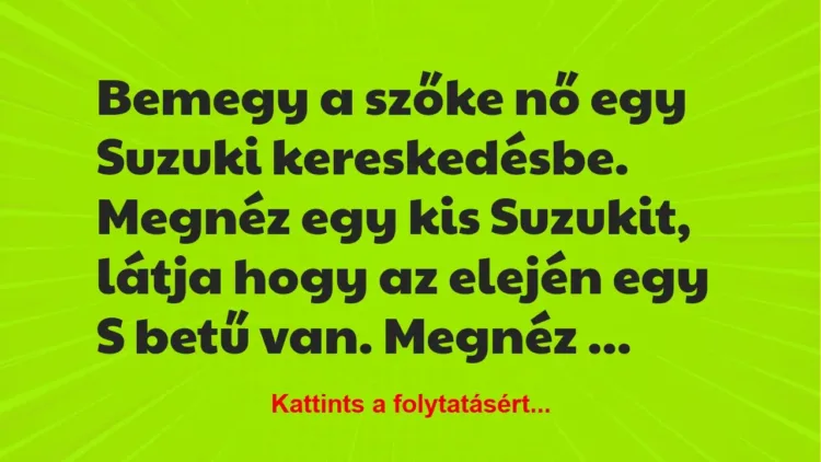 Bemegy a szőke nő egy Suzuki kereskedésbe.