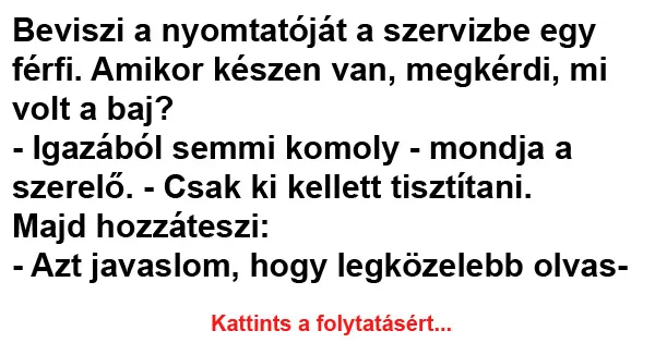 – Azt javaslom, hogy legközelebb olvassa el a kezelési útmutatóban hogyan kell, és akkor házilag is megcsinálhatja.