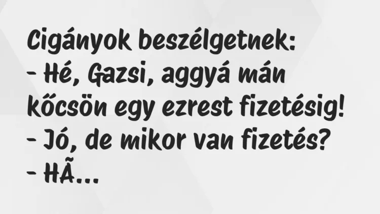 – Hé, Gazsi, aggyá mán kőcsön egy ezrest fizetésig!