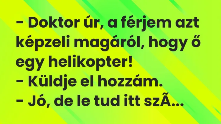 – Doktor úr, a férjem azt képzeli magáról, hogy ő egy helikopter!