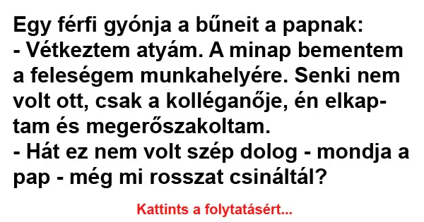 – Atyám, múlt héten, elmentem a feleségem nővéréhez, senki más nem volt otthon, őt is elkaptam, és megerőszakoltam.