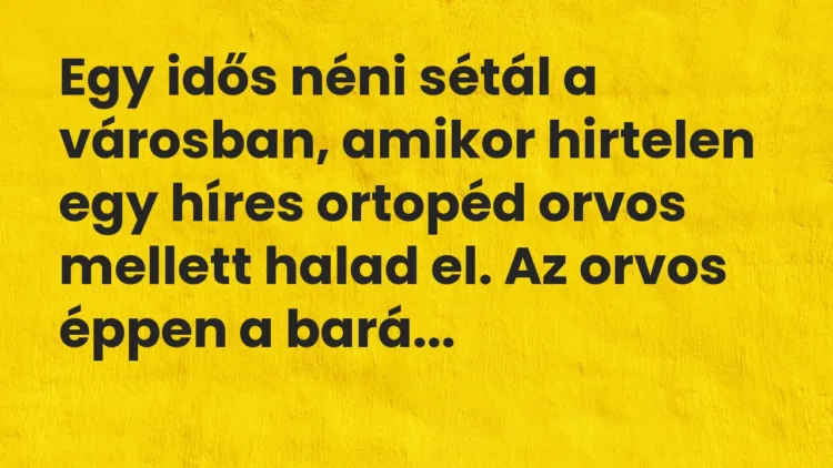 Egy idős néni sétál a városban, amikor hirtelen egy híres ortopéd orvos mellett halad el.