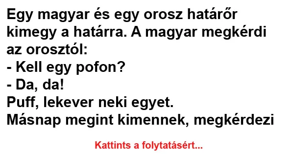Egy magyar és egy orosz határőr kimegy a határra.