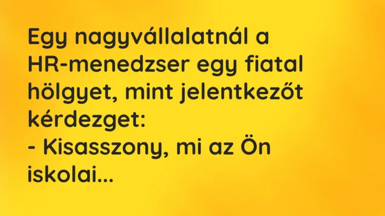 Egy nagyvállalatnál a HR-menedzser egy fiatal hölgyet, mint jelentkezőt kérdezget: