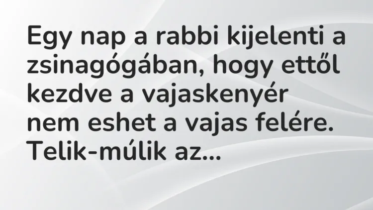 Egy nap a rabbi kijelenti a zsinagógában, hogy ettől kezdve a vajaskenyér nem eshet a vajas felére.