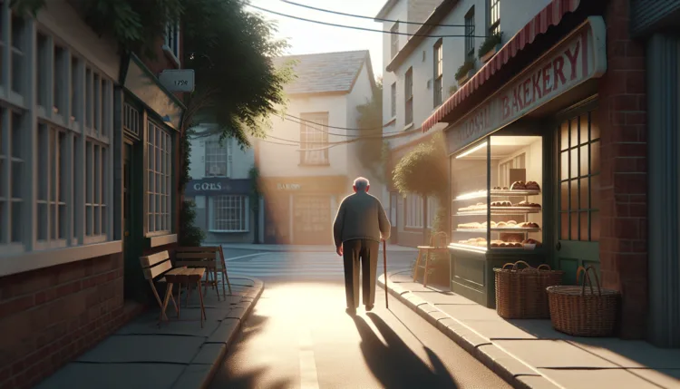 Egy nyugdíjas bácsi minden reggel elmegy a közeli pékségbe.