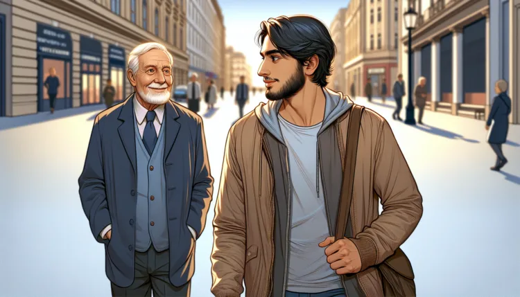 Egy nyugdíjas bácsi sétál a városban, amikor meglát egy fiatalembert, aki dühösen üti a telefonját.