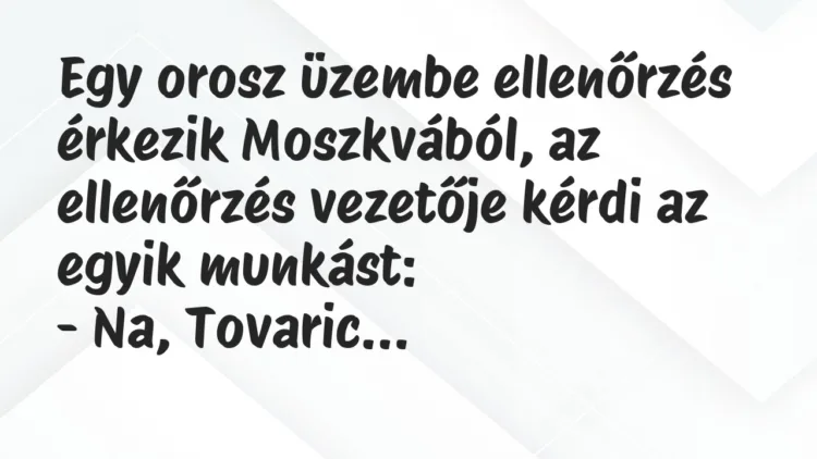 Egy orosz üzembe ellenőrzés érkezik Moszkvából, az ellenőrzés vezetője kérdi az egyik munkást: