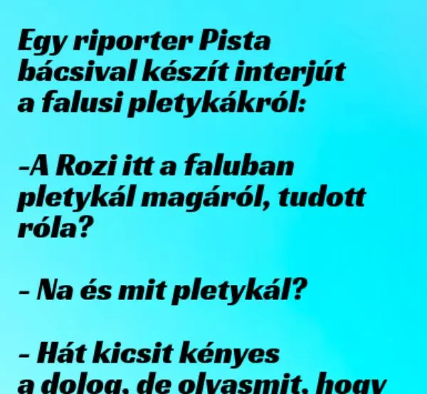 Egy riporter Pista bácsival készít interjút a falusi pletykákról: