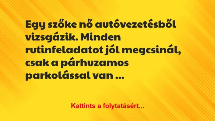 Egy szőke nő autóvezetésből vizsgázik.