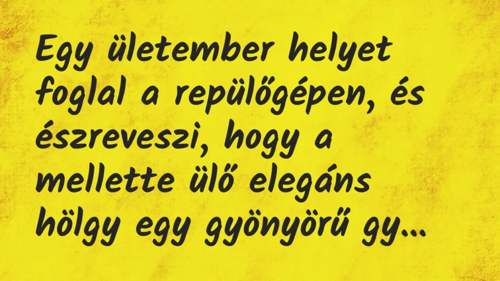 Egy ületember helyet foglal a repülőgépen, és észreveszi, hogy a mellette ülő elegáns hölgy egy gyönyörű gyémántgyűrűt visel.
