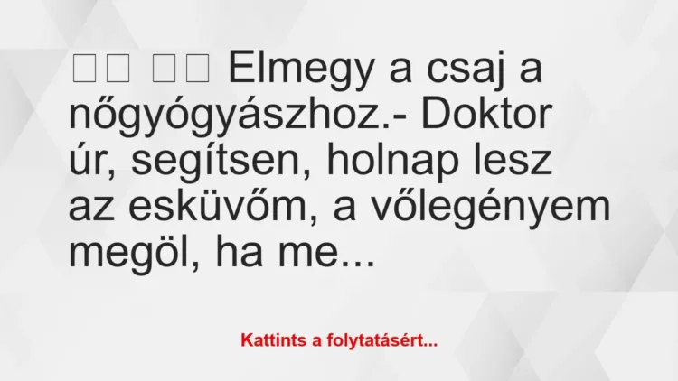 – Doktor úr, segítsen, holnap lesz az esküvőm, a vőlegényem megöl, ha megtudja, hogy nem vagyok szűz.
